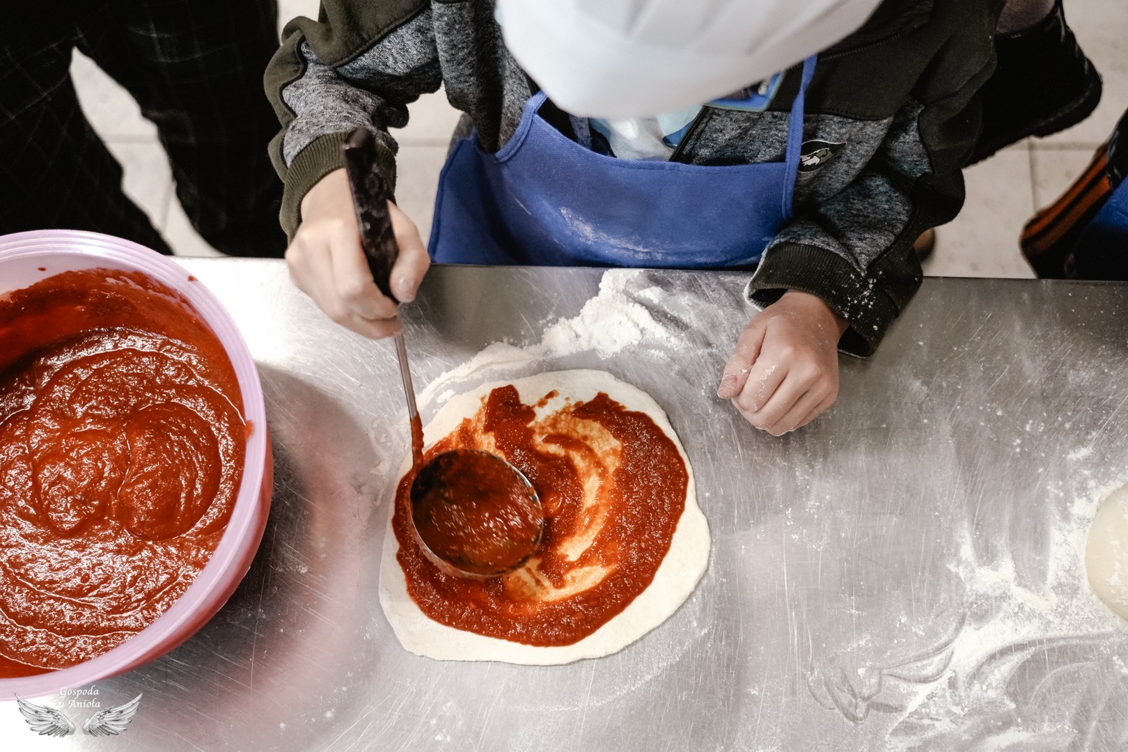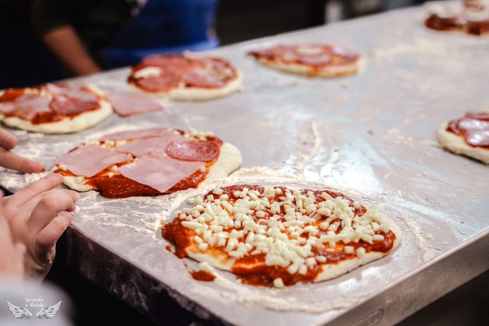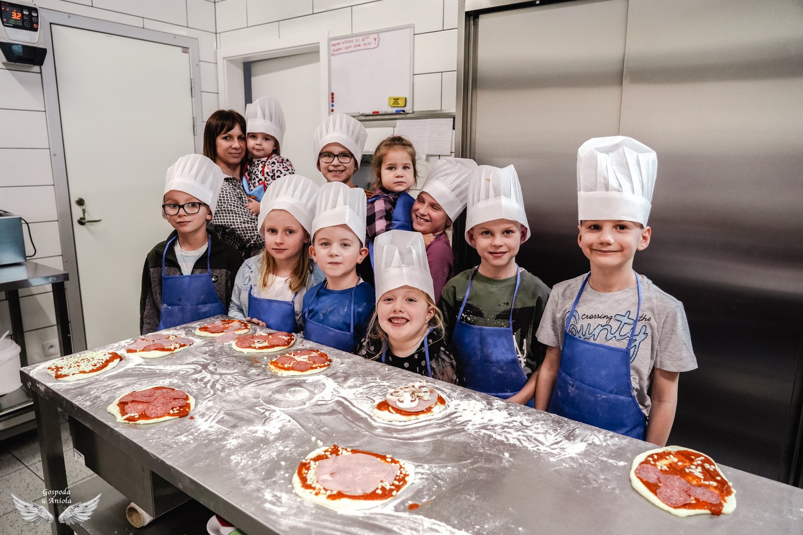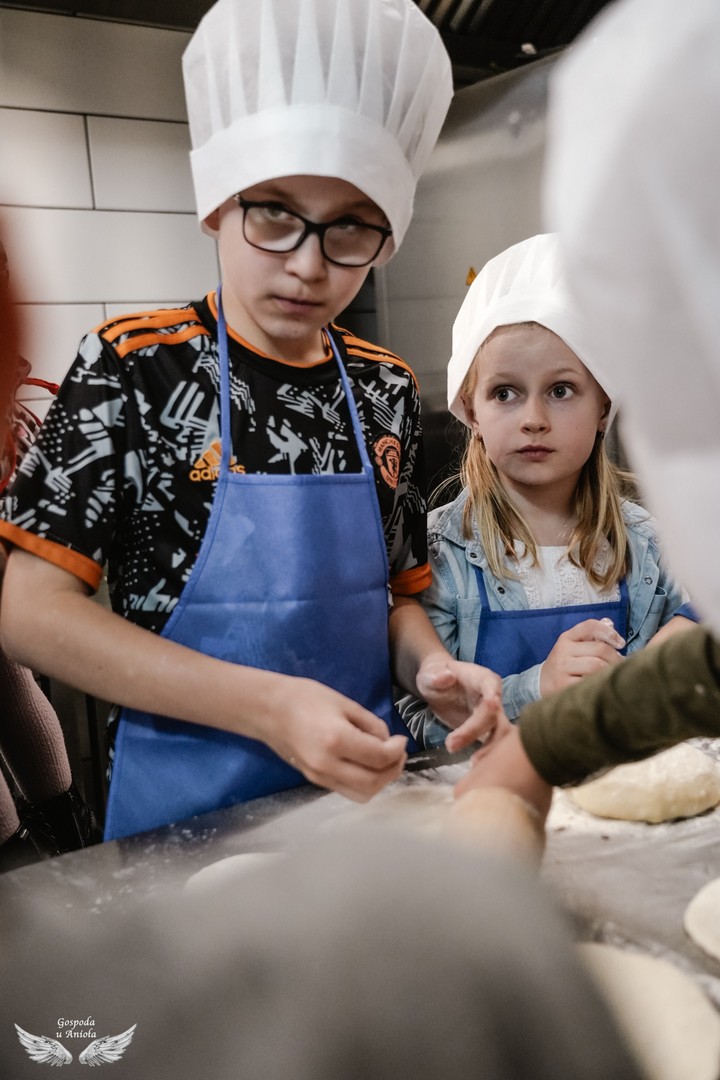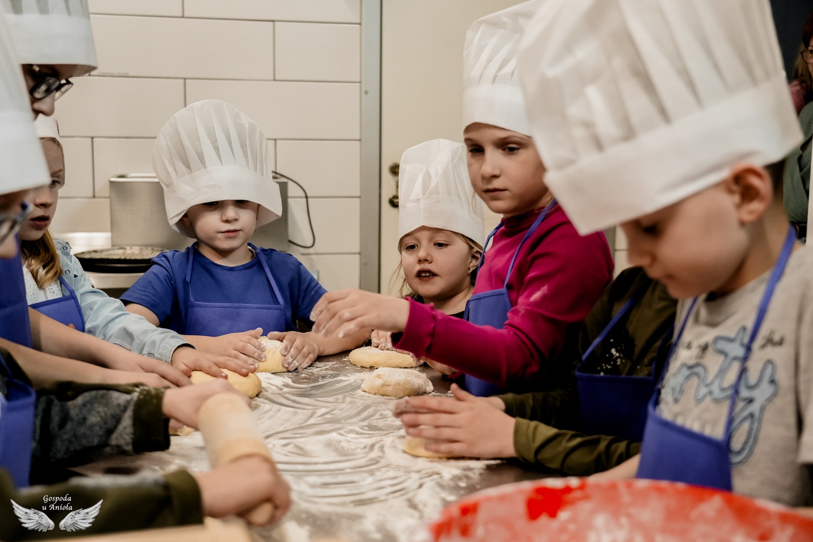 W Gospodzie u Anioła zapanowała radosna wrzawa, gdy dzieci zebrały się, by uczestniczyć w wyjątkowej lekcji robienia pizzy z okazji urodzin. Pod okiem doświadczonego szefa kuchni, maluchy ubrane w miniaprony i czepek z uśmiechami na twarzach, przystąpiły do pracy. Z determinacją i entuzjazmem wybierały ulubione składniki. Wesołe okrzyki towarzyszyły każdemu krojowi i posypywaniu, a na koniec, gdy aromatyczna pizza wyszła z pieca, mali kucharze triumfalnie prezentowały swoje dzieło, gotowe do degustacji na przyjęciu urodzinowym.