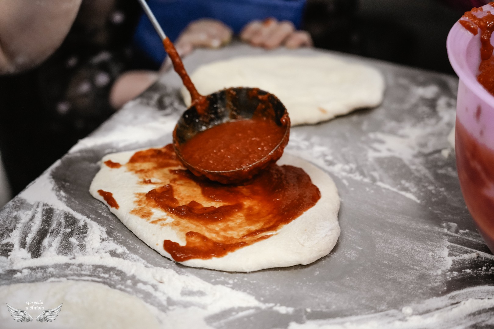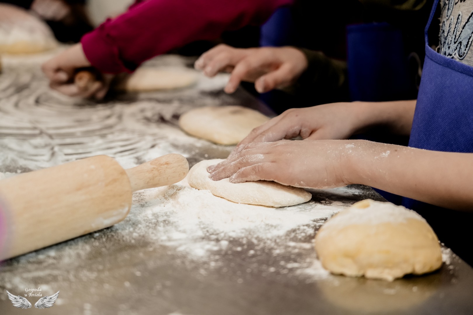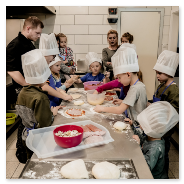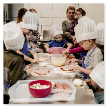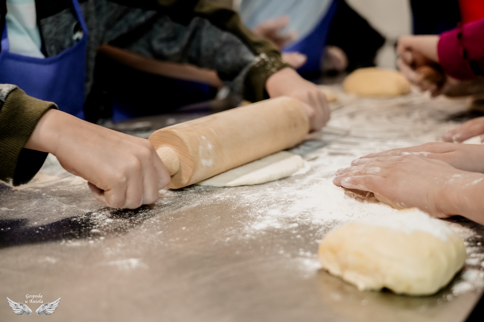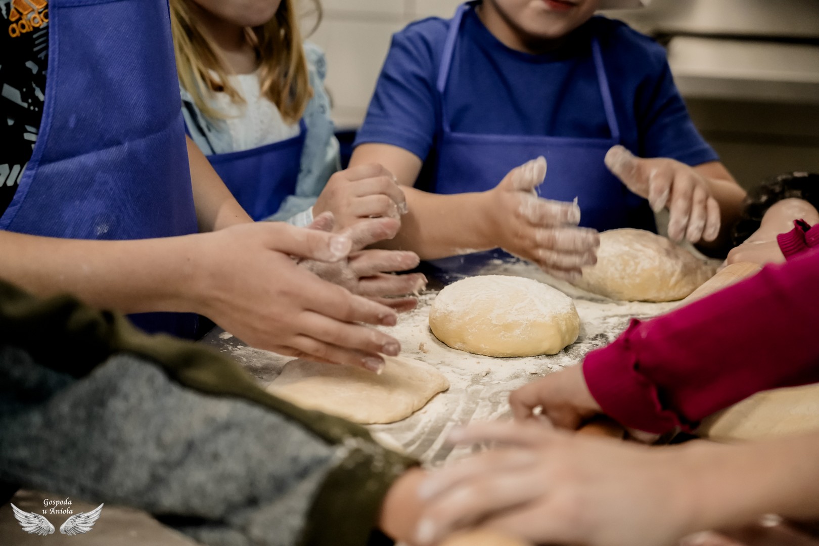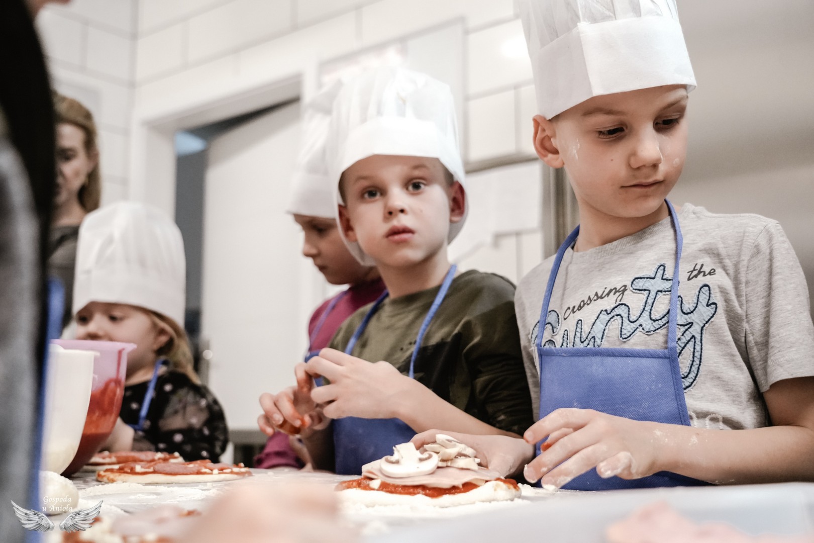 W Gospodzie u Anioła zapanowała radosna wrzawa, gdy dzieci zebrały się, by uczestniczyć w wyjątkowej lekcji robienia pizzy z okazji urodzin. Pod okiem doświadczonego szefa kuchni, maluchy ubrane w miniaprony i czepek z uśmiechami na twarzach, przystąpiły do pracy. Z determinacją i entuzjazmem wybierały ulubione składniki. Wesołe okrzyki towarzyszyły każdemu krojowi i posypywaniu, a na koniec, gdy aromatyczna pizza wyszła z pieca, mali kucharze triumfalnie prezentowały swoje dzieło, gotowe do degustacji na przyjęciu urodzinowym.